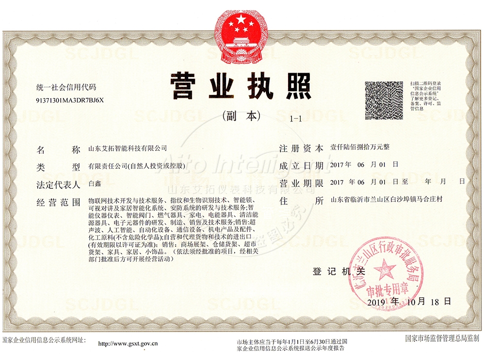 山東艾拓智能科技有限公司是以設計、研發、生產、銷售、服務為一體的綜合性新型企業,我們一直致力于生產智能水表、智能電表、智能燃氣表、超聲波熱量表等四大系列50余款產品,公司注冊資金1680萬元,占地6000余平。